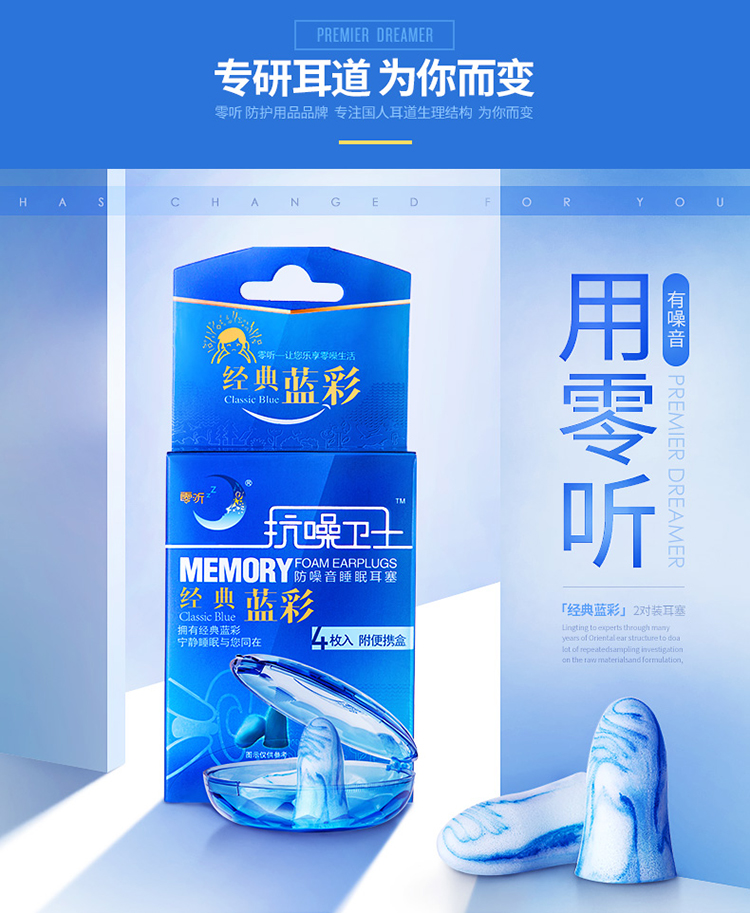 零聽(tīng)抗噪衛(wèi)士睡眠耳塞藍(lán)彩4枚入
